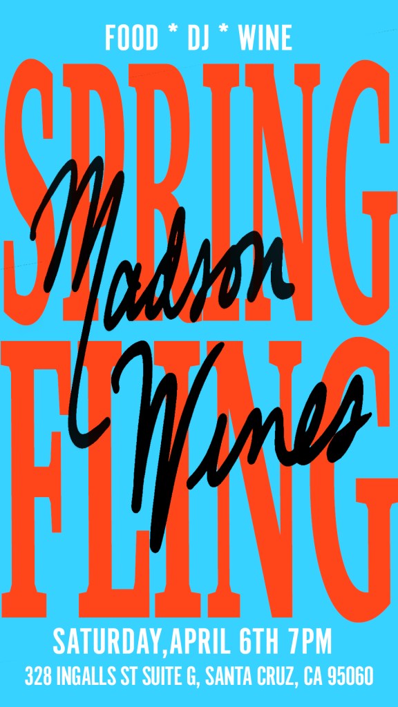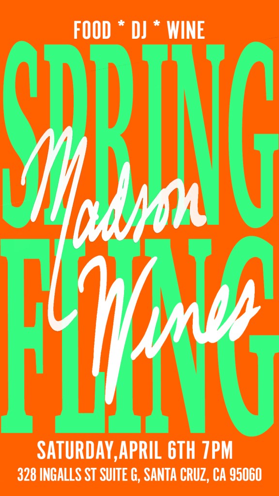 My second love after design is wine. I have WSET Level 3 certification and in 2022 I started working for Madson Wines in the tasting room and production facility in Santa Cruz on weekends. I worked with the wine maker to update the labels for their 2023 & 2024 vintages. I also assisted in marketing posters for events.