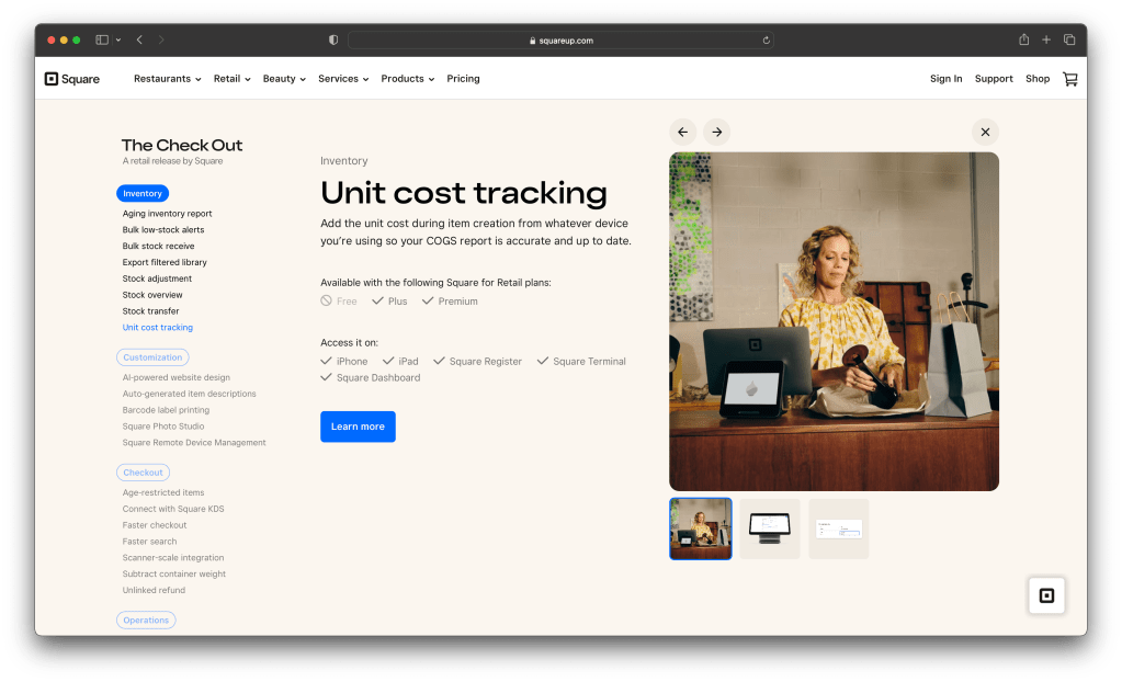 Built and maintained Square for Retail page for US, Canada, Spain, France, Ireland, and Japan. Used Contentful and created and localized all image assets required.